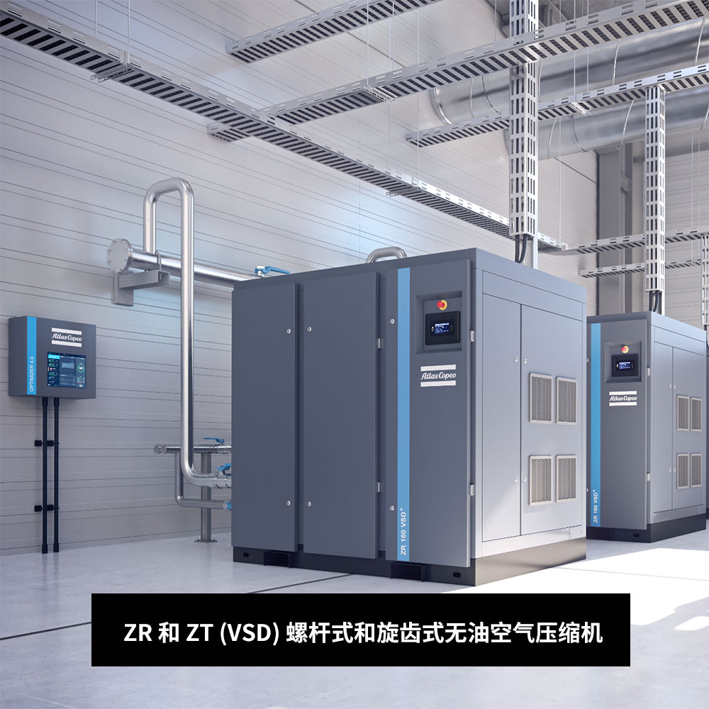 ZR 和 ZT 螺桿式和旋齒式無油空氣壓縮機可作為全性能機組提供,其中包含: